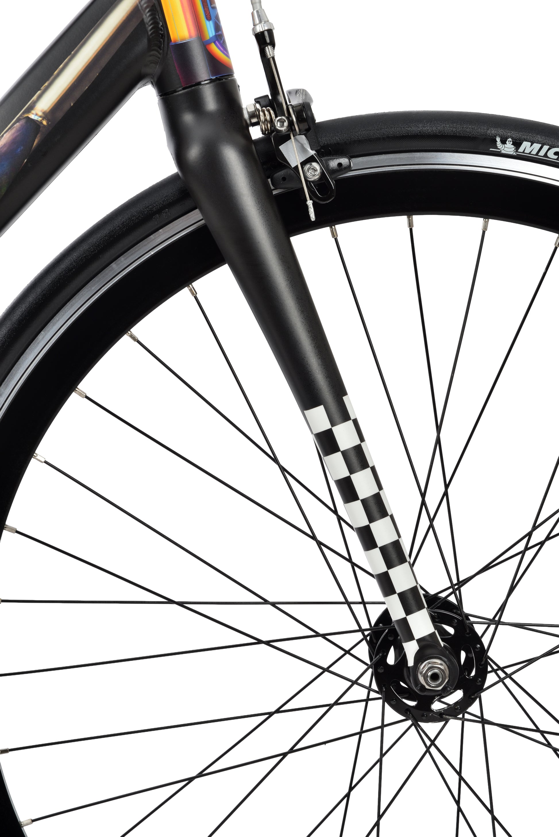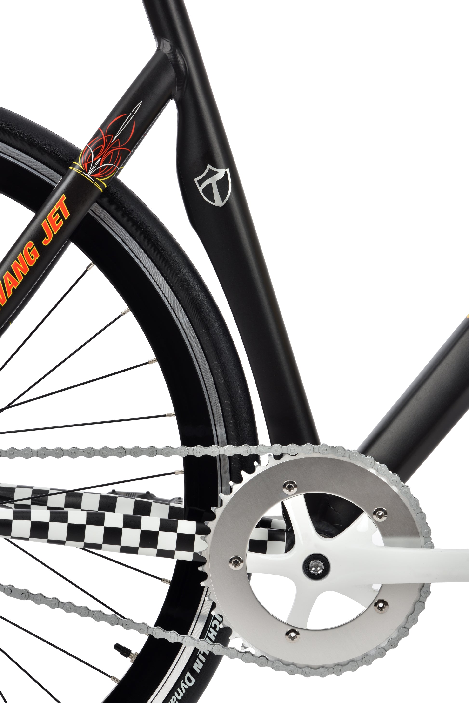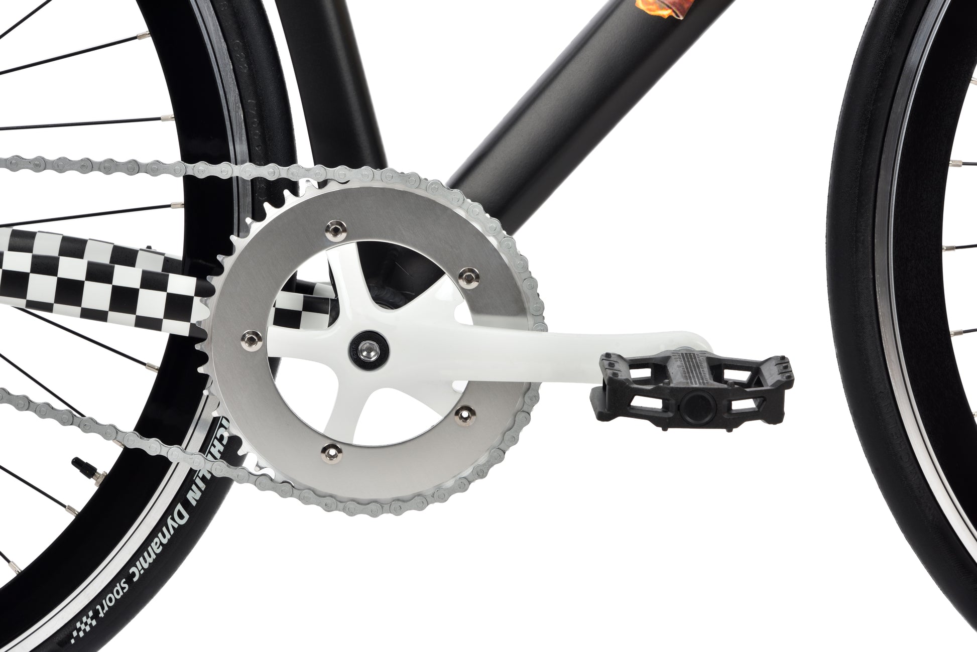 Il mozzo tipo Flip Flop, installato sulla ruota posteriore, consente al rider di scegliere il sistema di trasmissione preferito, passando senza difficoltà da una configurazione fixie ad una singlespeed dotata di ruota libera. Le ruote ad alto profilo, derivate dall'esperienza in pista, garantiscono prestazioni eccellenti, in combinazione con l'aerodinamica essenziale e la qualità dei componenti, per una bicicletta che non teme confronti, tanto nei velodromi quanto nelle vie delle città più trafficate.