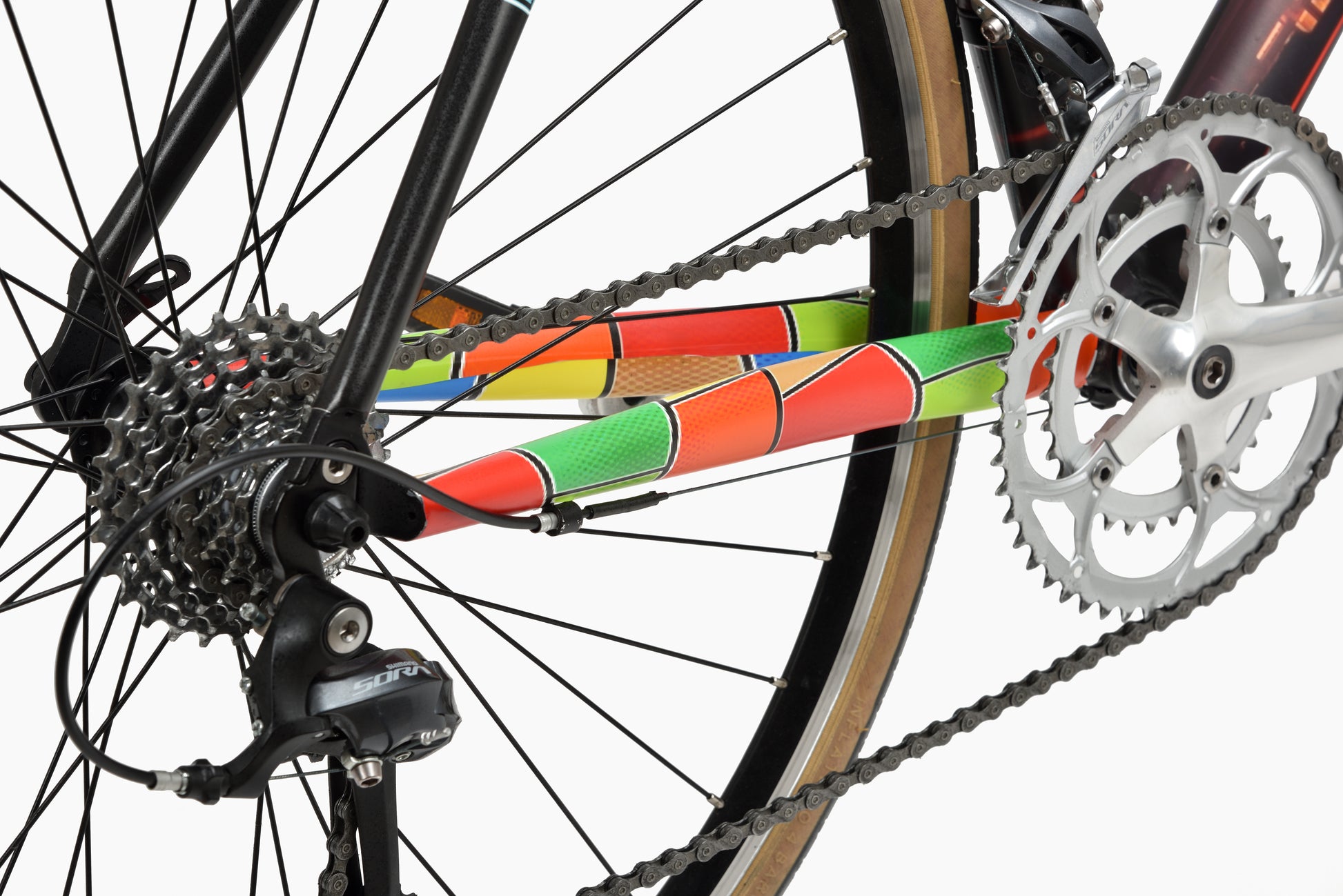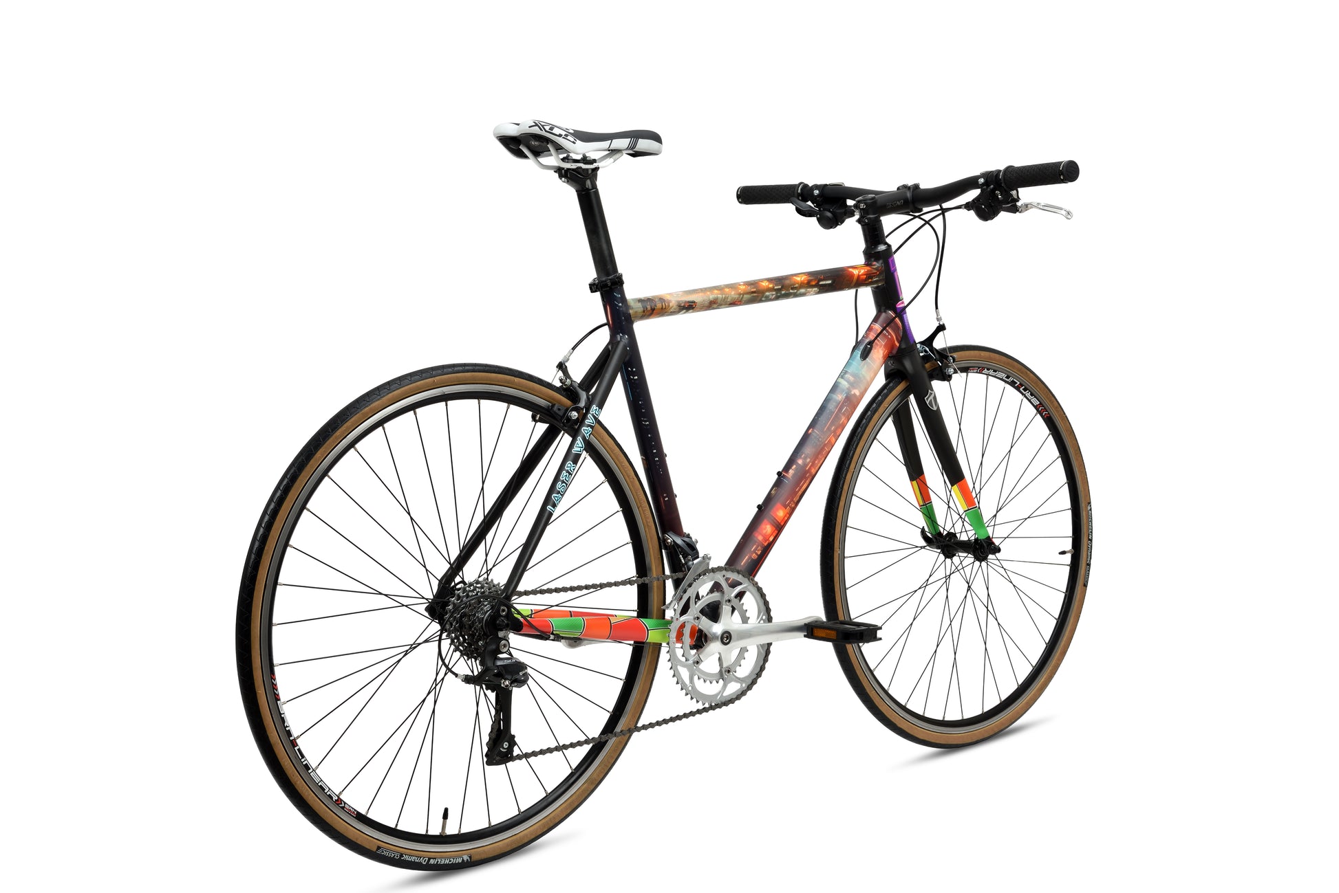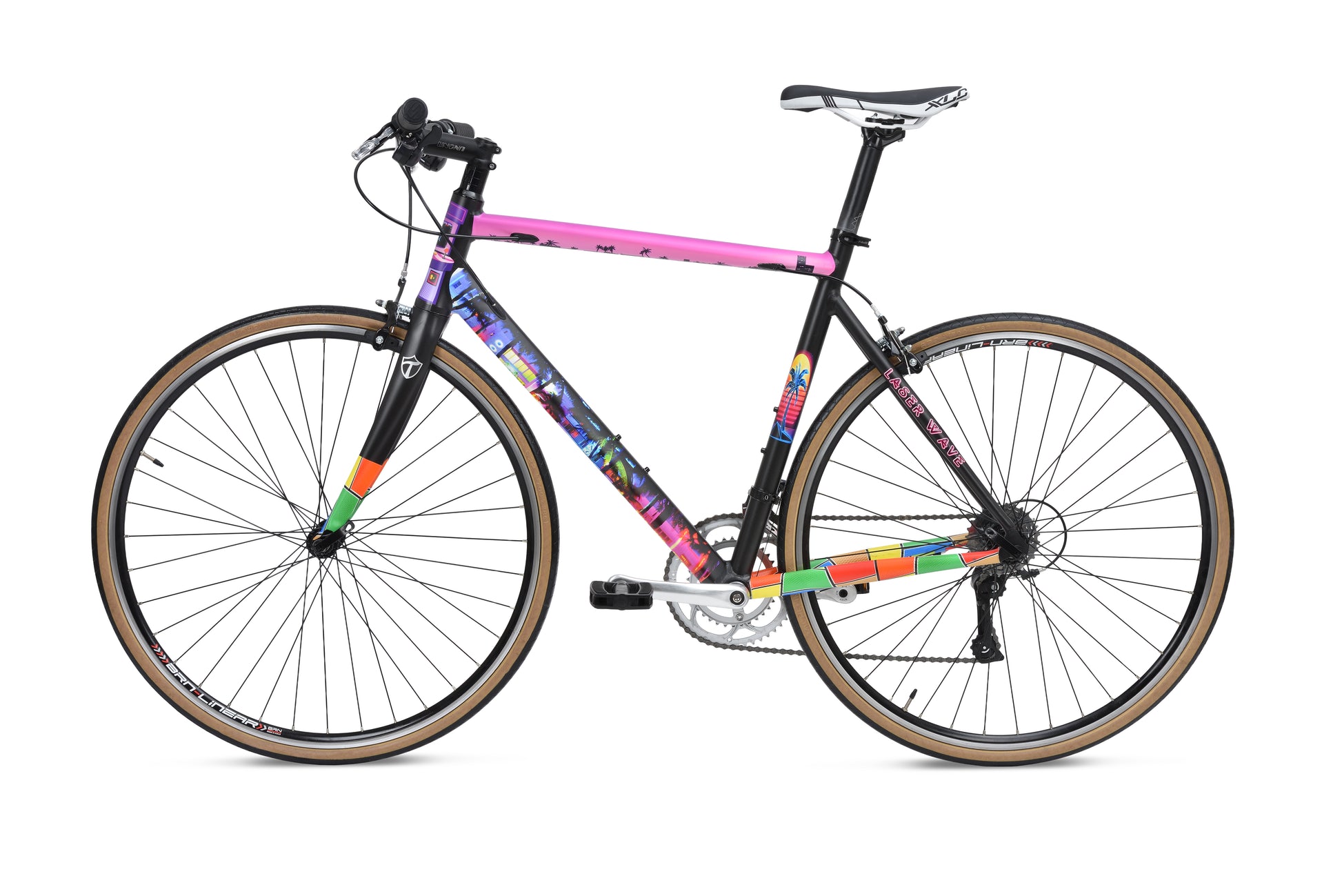 La GR 116 T LASERWAVE ci porta direttamente agli indimenticabili anni '80. Come in un videogioco arcade, rappresentato sul tubo sterzo, il rider è chiamato a scegliere lo scenario nel quale cimentarsi: una città immersa in un oscuro mondo cyberpunk oppure una ambientazione synthwave/elettropop. Due volti speculari, due microcosmi rappresentati sui lati del telaio, come due facce della stessa medaglia, due anime che convivono all'interno di questa bicicletta e le conferiscono un carattere unico,